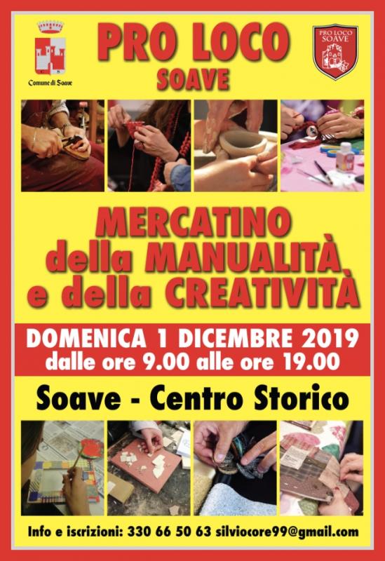 L'associazione Pro Loco di Soave propone per Domenica 01 Dicembre 2019 il "Mercatino della Manualità e della Creatività", che si svolgerà nel Centro Storico di Soave (VR) dalle 9,00 alle 19,00. Con il patrocinio di: Comune di Soave e UfficioTuristico IAT Est Veronese.