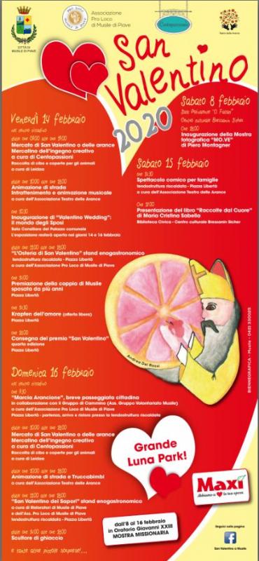 Ritorna in occasione degli annuali festeggiamenti di San Valentino a Musile di Piave (VE) il mercatino di San Valentino: circa 30 espositori provenienti dal Veneto e dal Friuli esporranno le proprie creazioni rigorosamente fatte a mano: borse, candele, oggettistica in legno, cornici, saponi, bigiotteria di vario genere e di vario materiale, cappellini in lana, oggettistica in feltro e lana, articoli e vestitini per bimbi, cerchielli pee capelli, turbanti, sassi dipinti, cinture e molto altro ancora.