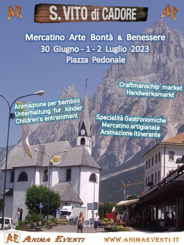Mercatino Arte Bontà e Benessere a San Vito Di Cadore dal 30 giugno al 2 luglio 2023