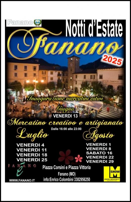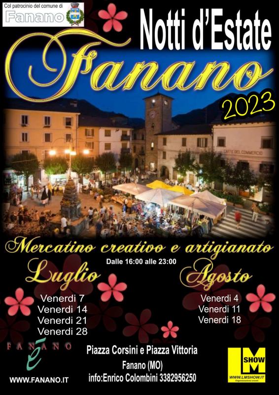 Mercatino creativo e prodotti tipici.Piazza Corsini e Piazza Vittoria,Fanano (MO).Dalle 17:00 alle 23:30.Info whatsapp:Enrico Colombini 3382956250.