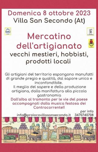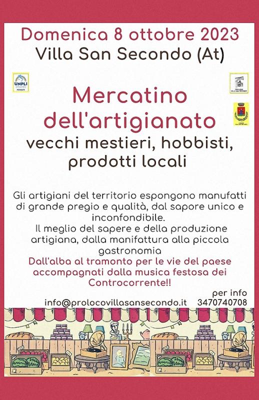 A Villa San Secondo in provincia di Asti si svolge nella giornata di Domenica 08 Ottobre 2023 il Mercatino dell'Artigianato.