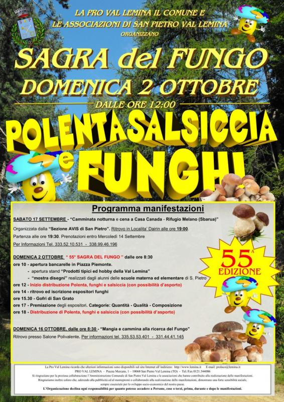 La Sagra del Fungo a San Pietro Val Lemina (TO) arriva Domenica 02 Ottobre 2022.