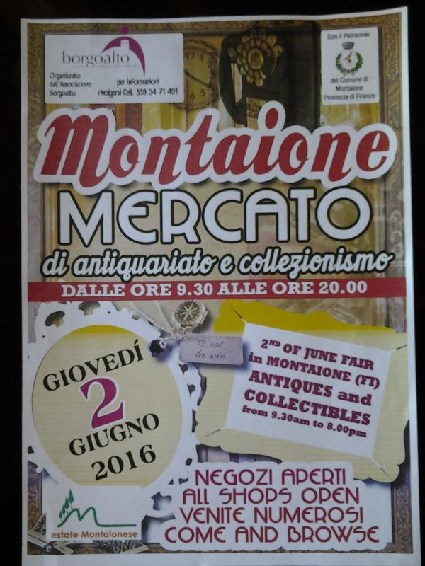 Giovedì 2 giugno 2016 si terrà il Mercatino di Antiquariato e Collezionismo nel centro storico di Montaione (FI).