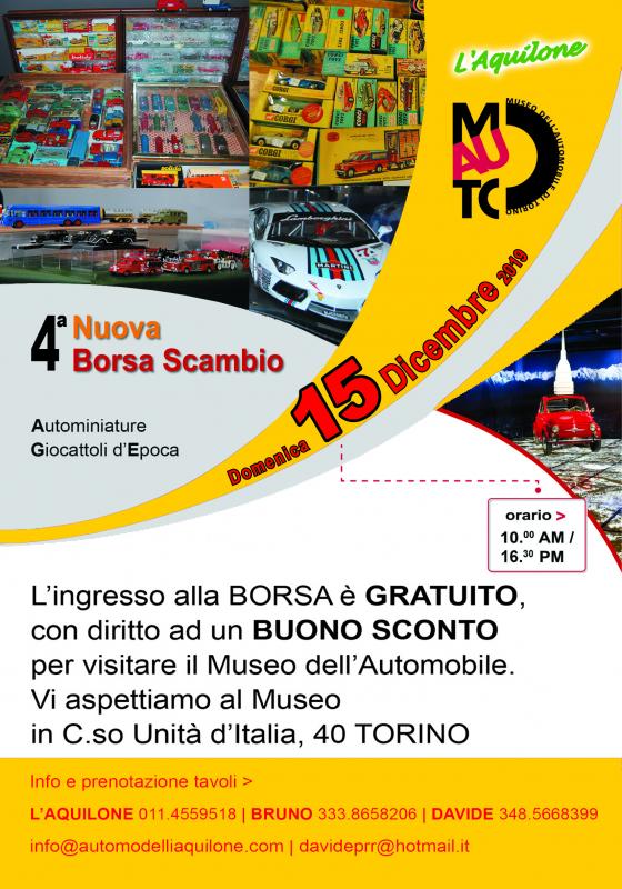 Domenica 15 Dicembre presso il Museo nazionale dell'Automobile di Torino, Cso Unita' d'Italia 40 Torino, 4° edizione della Borsa Scambio dell'automodello e del giocattolo d'epoca.