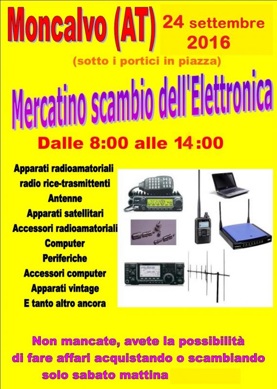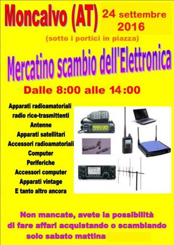 E' in programma il Mercatino Scambio Radioamatoriale di Moncalvo (AT), in data sabato 24 settembre 2016,