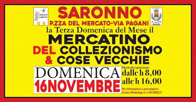 In Piazza del Mercato a Saronno in provincia di Varese si svolge ogni terza Domenica del Mese il Mercatino del Collezionismo e delle Cose Vecchie.