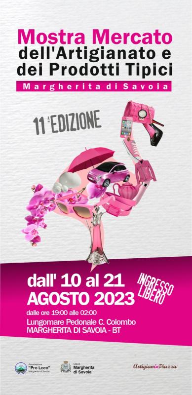 Torna a Margherita di Savoia in Puglia (BT), la “MOSTRA NAZIONALE DELL’ARTIGIANATO E DEI PRODOTTI TIPICI REGIONALI”, dal 09 al 20 Agosto 2025, con apertura solo serale dalle ore 19:00 alle ore 02:00 sul frequentatissimo lungomare pedonale Cristoforo Colombo.
