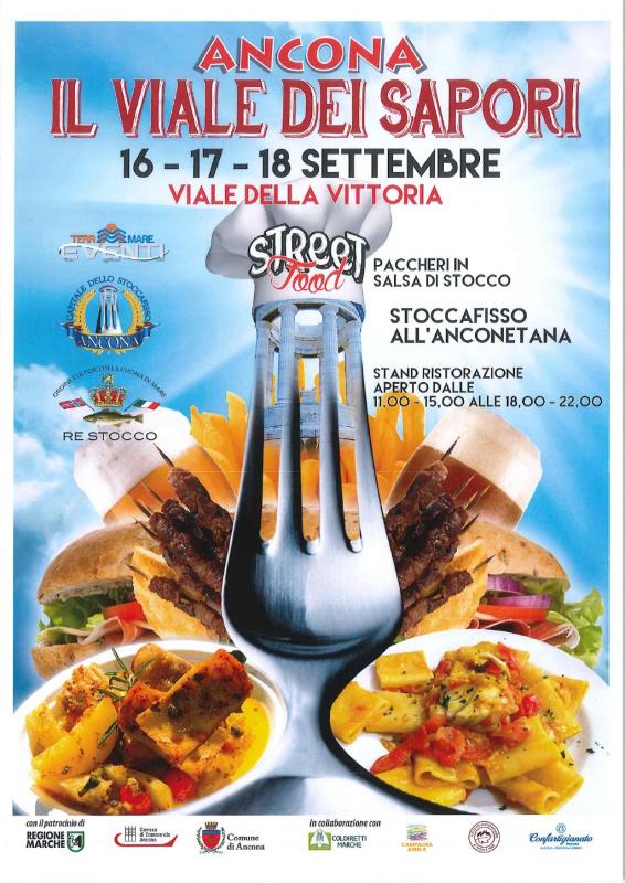 IL VIALE DEI SAPORI “Street Food” è la manifestazione che, vuole accompagnare i visitatori alla scoperta di antiche tradizioni, ricette e sapori per valorizzare e divulgare la conoscenza della cucina semplice, passeggiando per il Viale della Vittoria di Ancona.