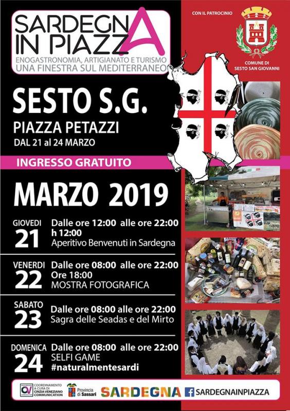 Il tour di Sardegna In Piazza prosegue e dal 21 al 24 Marzo 2019 potrete degustare i nostri prodotti venendo nello splendido Comune di Sesto San Giovanni in Piazza Petazzi.