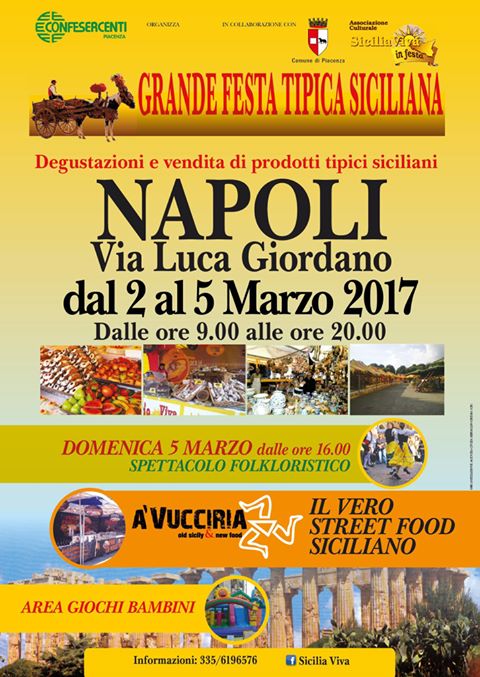 Sicilia viva in festa, la grande manifestazione folkloristica siciliana, arriva a Napoli dal 2 al 5 marzo 2017 in via Luca Giordano.