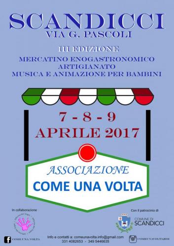 “COME UNA VOLTA”: tre giorni di esposizione di prodotti tipici regionali e artigianato italiano, alla riscoperta dei sapori di una volta.Gli Stands aprono al pubblico dalle ore 9.00 alle ore 20.00, nei giorni di venerdi 7, sabato 8 e domenica 9, il tutto sarà contornato da associazione, che si prenderà cura dei piccoli e dei grandi, con le loro attrazioni e giochi.