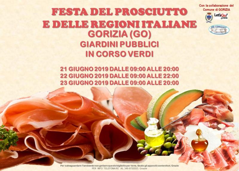 “FESTA DEL PROSCIUTTO E DELLE REGIONI ITALIANE”che si terrà nei giorni 21-22-23 GIUGNO 2019 in GIARDINI PUBBLICI IN CORSO VERDI a GORIZIA (GO).