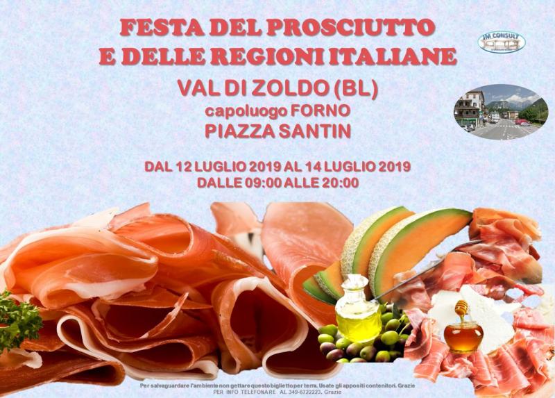 “FESTA DEL PROSCIUTTO E DELLE REGIONI ITALIANE” che si terrà nei giorni 12-13-14 luglio 2019 in PIAZZA SANTIN a VAL DI ZOLDO.