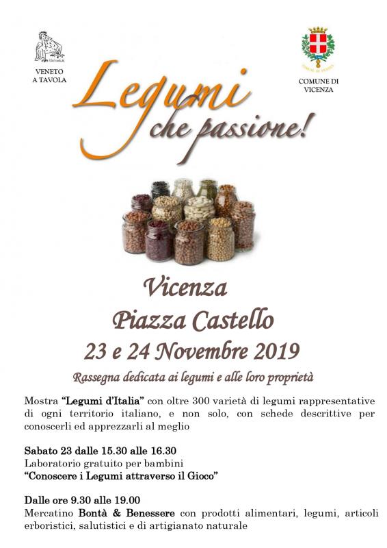 La manifestazione Legumi che Passione si terrà a Vicenza, nella centralissima Piazza Castello, sabato 23 e domenica 24 novembre.