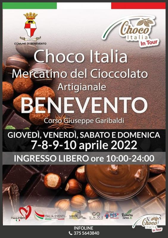 In Corso Giuseppe Garibaldi a Benevento si svolge nei giorni 07, 08, 09, 10 Aprile 2022, dalle ore 10.00 alle ore 24.00, il Mercatino del Cioccolato Artigianale - Choco Italia in Tour 2022.
