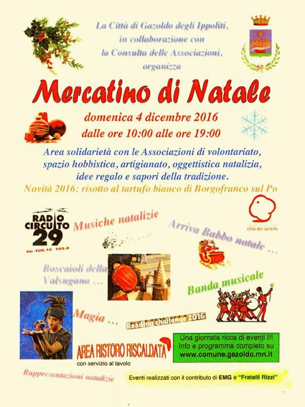 Mercatino di Natale a Gazoldo degli Ippoliti (MN), domenica 4 dicembre 2016, dalle ore 10:00 alle ore 19:00.