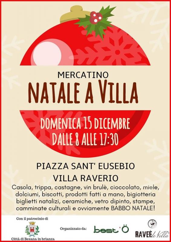 Domenica 15 Dicembre 2019 si terrà a Villa Raverio di Besana in Brianza il Mercatino di Natale.