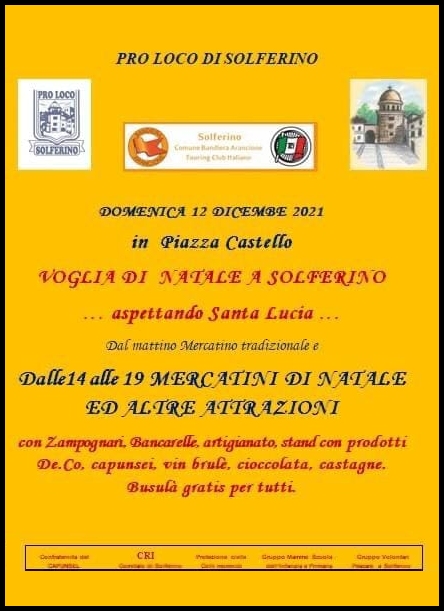 In Piazza Castello a Solferino in provincia di Mantova si svolge nella giornata di Domenica 12 Dicembre 2021 la manifestazione "Voglia di Natale a Solferino" ...aspettando Santa Lucia...