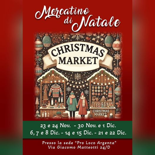 Vieni a scoprire la magia del Natale al Mercatino Artigianale di Argenta! Un viaggio tra creazioni uniche e regali speciali fatti a mano, ogni weekend dal 23 novembre al 22 dicembre. Immergiti nell'atmosfera natalizia e trova il regalo perfetto per chi ami
