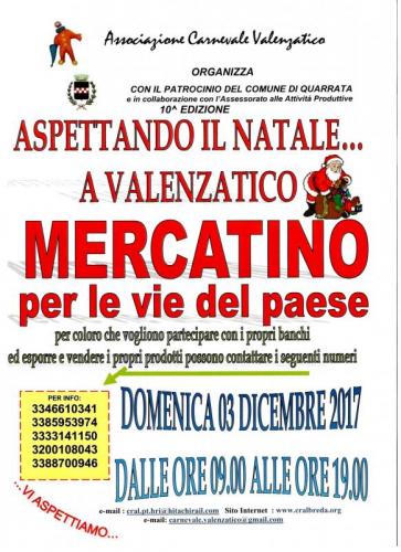 Torna il Mercatino di Natale Valenzatico domenica 3 dicembre 2017, dove potrete trovare un vasto assortimento di banchi di vario genere: abbigliamento, calzature, borse, intimo, alimentari, giocattoli, articoli natalizi.