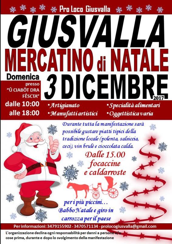 A Giusvalla domenica 3 dicembre 2017 si tiene il Mercatino di Natale.
