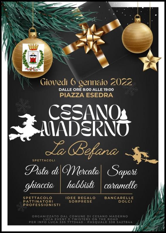 In Piazza Esedra a Cesano Maderno in provincia di Monza e Brianza si svolge nella giornata di Giovedì 06 Gennaio 2022, dalle ore 08.00 alle ore 19.00, la Festa della Befana.
