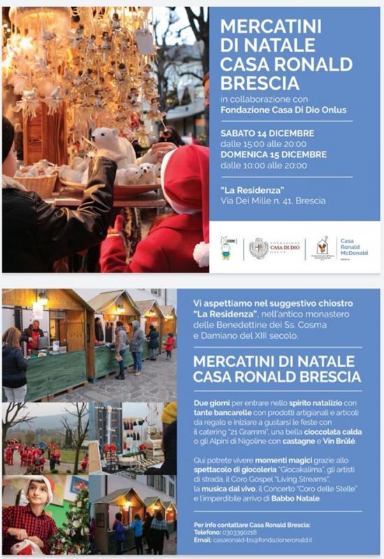 A Brescia si svolge nei giorni 14 e 15 Dicembre 2019 il Mercatino di Natale