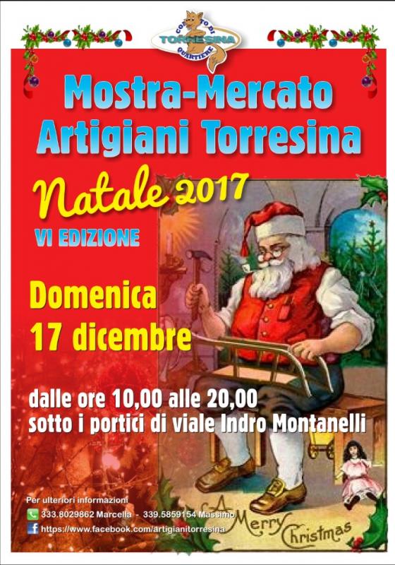 Domenica 17 dicembre 2017 dalle ore 10,00 alle ore 20,00 appuntamento sotto ai portici di viale Indro Montanelli della Mostra Mercato Artigiani Torresina.Siamo ormai giunti alla Sesta Edizione di questo Mercatino Natalizio davvero particolare, dove artigiani ed hobbisti esporranno e venderanno opere frutto della loro creatività…Che sia il vicino della porta accanto o il genitore della scuola dove vanno i vostri figli, li troverete a mostrare con orgoglio il frutto dei loro lavori manuali. L'associazione Noi di Torresina si occuperà di “Babbo Natale Torna a Torresina”, un felice ritorno di Babbo Natale nel quartiere, giunto ormai alla sua XV EdizionePassate parola, perché sarà un Mercatino Natalizio davvero speciale…Vi aspettiamo!!!