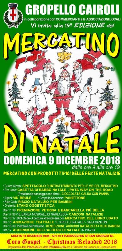 Domenica 9 dicembre 2018 viene organizzao il Mercato di Natale a Gropello Cairoli.