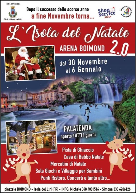 La location di quest'anno sarà la nuova area eventi di Isola del Liri (FR) ARENA BOIMOND in via borgo s. Domenico (ex Piazzale Boimond) un palatenda attrezzato che ospiterà non solo il PALAGHIACCIO ma anche un AREA CONCERTI, la CASA DI BABBO NATALE, MERCATINI, AREA RISTORO, AREA GIOCHI e tanto, tanto altro
