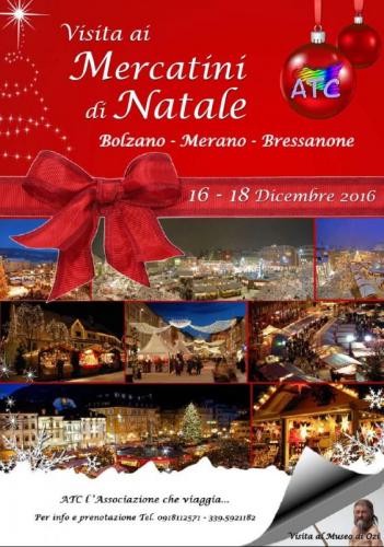 Ore 15,00 Visita al Mercatino di Natale di Merano che si estende ai due lati della passeggiata lungo il fiume Passirio. Nelle settimane di Natale la cornice di luci e addobbi illumina questa zona di Merano come se fosse il paese delle meraviglie. I visitatori si ritrovano immersi in un'atmosfera da favola natalizia.Il mercatino di Natale di Merano prevede una ricca e varia offerta per grandi e piccoli: gruppi musicali di strumenti a fiato allietano le passeggiate con musiche natalizie, mentre le bancarelle propongono tante idee e specialità culinarie tipiche. La luminosità delle casette di legno e gli alberi di Natale addobbati faranno brillare le vie delle strade di Merano. Nelle 80 casette addobbate vengono esposti manufatti dell'artigianato locale con artisti e artigiani nazionali ed internazionali: prodotti tessili, in ceramica, in legno, in vetro, ma anche specialità gastronomiche tipiche dell’Alto Adige.