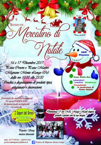 Sabato 16 e domenica 17 dicembre 2017 a Mignano Monte Lungo (CE), si svolgerà la prima edizione del Mercatino di Natale.