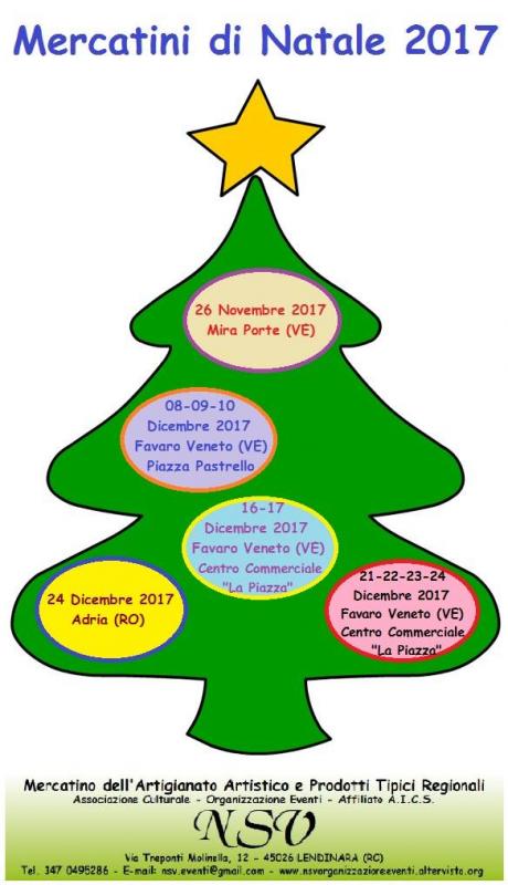 L'Associazione Culturale NSV Organizzazione Eventi affiliata A.I.C.S. - Comitato Provinciale di Rovigo, è lieta di comunicare le date dei prossimi Mercatini di Natale: