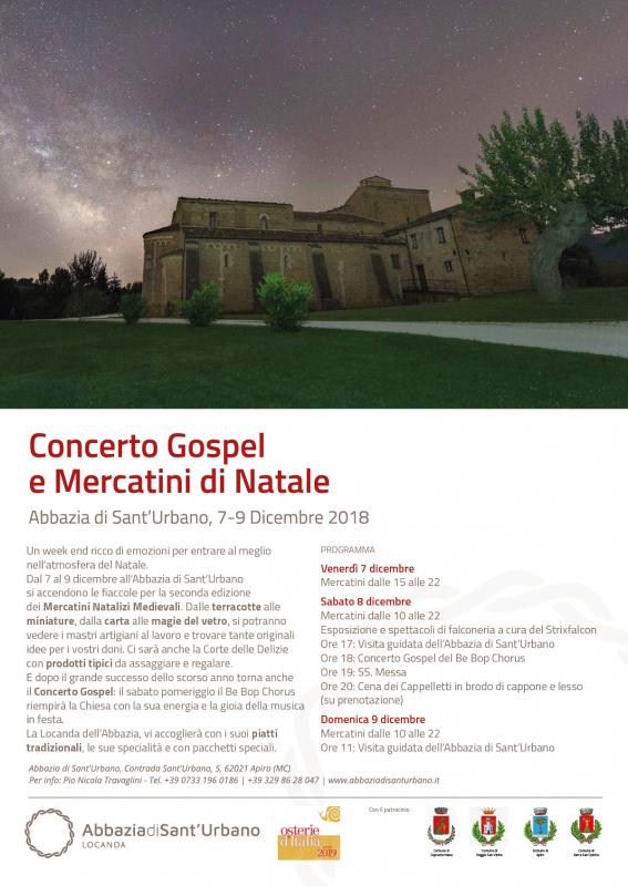 Dalle terracotte alle miniature, dalla carta alle magie del vetro, si potranno vedere i mastri artigiani al lavoro e trovare tante originali idee per i vostri doni. Ci sarà anche la Corte delle Delizie con prodotti tipici da assaggiare e regalare.E dopo il grande successo dello scorso anno torna anche il Concerto Gospel: il sabato pomeriggio il Be Bop Chorus riempirà la Chiesa con la sua energia e la gioia della musica in festa.