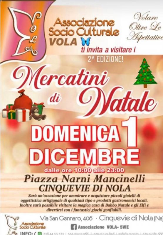 A Cinquevie di Nola in provincia di Napoli si svolgono nella giornata di Domenica 01 Dicembre 2019 la seconda edizione dei Mercatini di Natale.