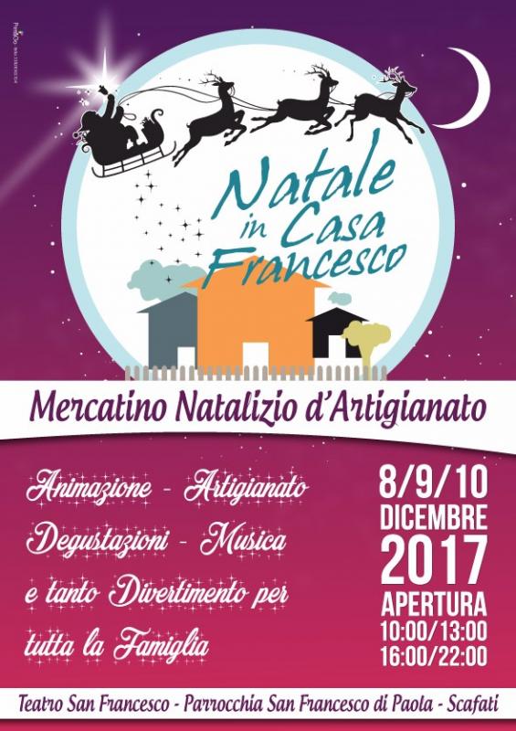 Dato il riscontro positivo dell'anno scorso, nei giorni 8/9/10 dicembre 2017 sarà replicato il mercatino artigianale "Natale in Casa Francesco", organizzato e coordinato dalla parrocchia di San Francesco di Paola di Scafati ed il parroco Don Peppino de Luca.