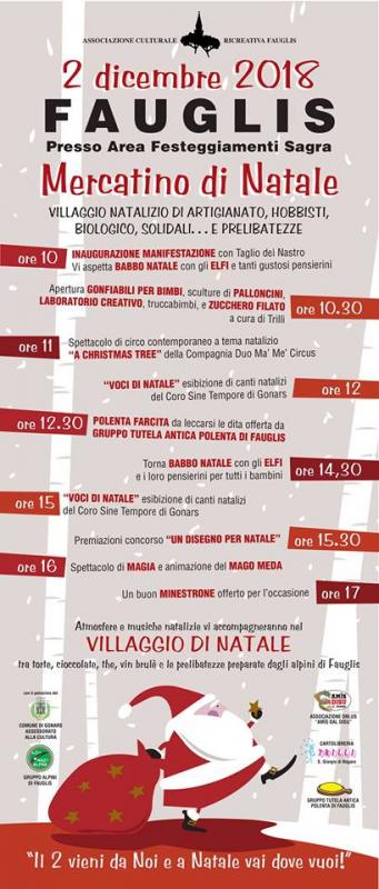 A Fauglis di Gonars in provincia di Udine si svolge nella giornata di Domenica 02 Dicembre 2018 i Mercatini di Natale.