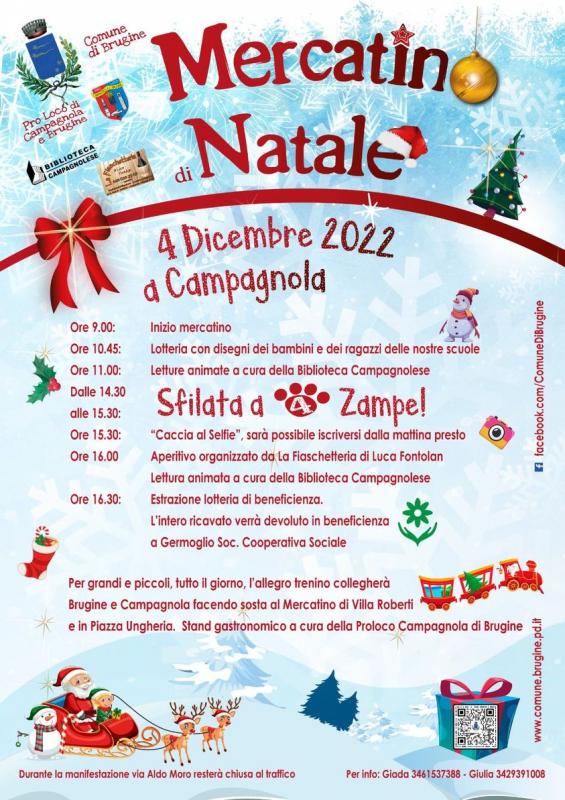A Campagnola di Brugine in provincia di Padova si svolge nella giornata di Domenica 04 Dicembre 2022 i Mercatini di Natale.