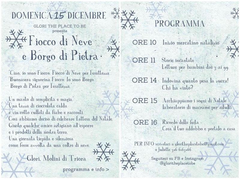 FIOCCO DI NEVE & BORGO DI PIETRA è una giornata all'insegna della fiaba, del Calore natalizio dato dal condividere un momento di magia, di intimità.
