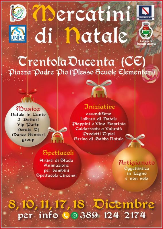A Trentola Ducenta in provincia di Caserta si svolgono nei giorni 08, 10, 11, 17, 18 Dicembre 2022 i Mercatini di Natale.