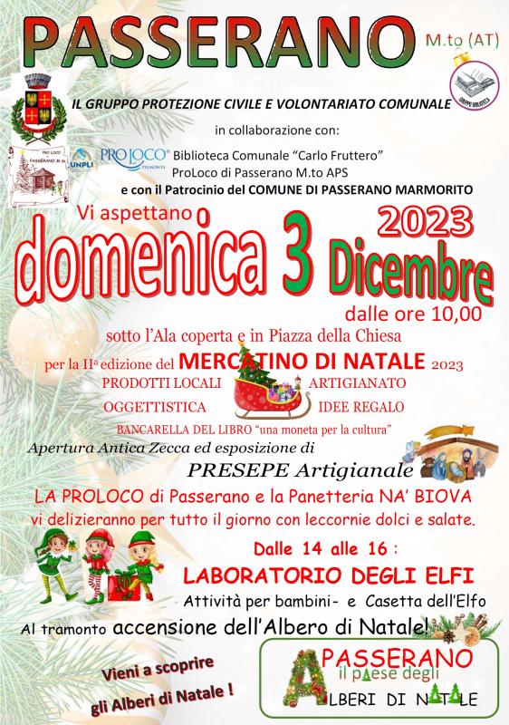 l’Associazione Turistica Proloco di Passerano M.to (AT), comunica che per l’anno 2023 in occasione del Natale la Proloco di Passerano M.to APS propone le seguenti attività:
