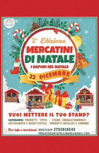 Sei un appassionato di enogastronomia o crei oggetti unici a tema natalizio? Questa è l'occasione giusta per te! La Pro Loco di Sant'Apollinare sta cercando espositori per i Mercatini di Natale che si terranno il 14 dicembre.