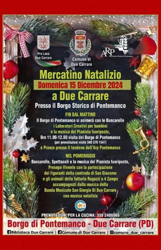 Bancarelle, Spettacoli e la musica del Pianista fuori posto, Presepe Vivente con la partecipazione dei figuranti della contrada di San Giacomo e gli animali della fattoria ragazziaquattrozampe, accompagnati dalla musica della bandamusicalediduecarrare con musica natalizia