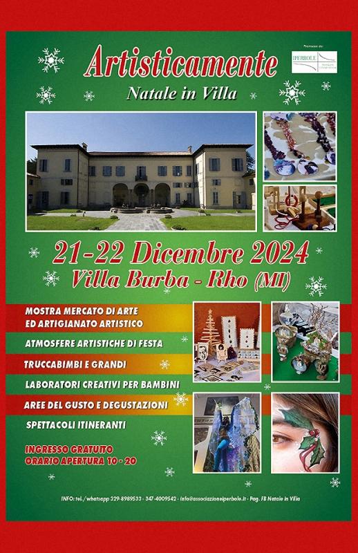 L’evento “Artisticamente - Natale in Villa” si terrà nella storica location di Villa Burba a Rho (MI) e punta alla qualità, all’originalità ed alla rappresentazione artistica e artigianale nelle sue numerose sfaccettature: dalla pittura alla scultura, dalle lampade in carta ai biglietti di auguri dipinti a mano, dalle decorazioni ed i centri tavola ai giochi in legno, dagli accessori moda per bambini alle confezioni regalo e tante altre idee curiose, originali ed hand made, per regali natalizi ed altre occasioni.