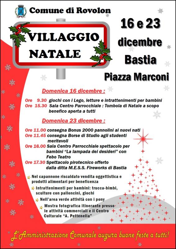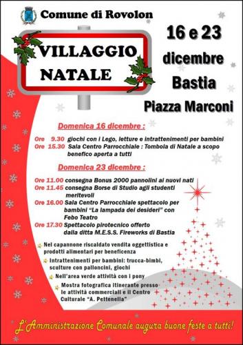 Il mercatino di Natale a Bastia si svolgerà le domeniche 16 e 23 dicembre a Bastia di Rovolon con intrattenimenti, giochi e spettacoli per bambini.