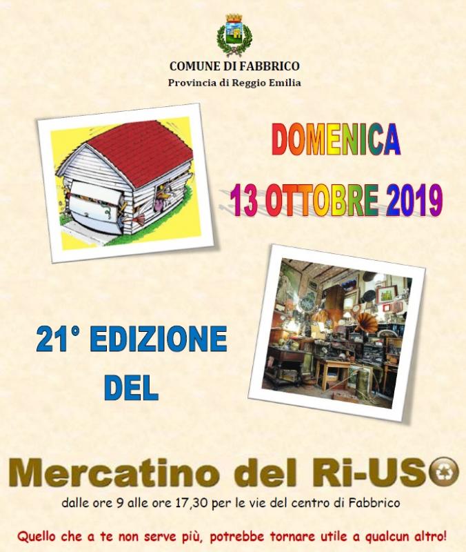 Domenica 13 ottobre 2019 torna l'appuntamento con il Mercatino Del Riuso a Fabbrico (RE), dalle ore 9 alle ore 17,30 per le vie del centro.