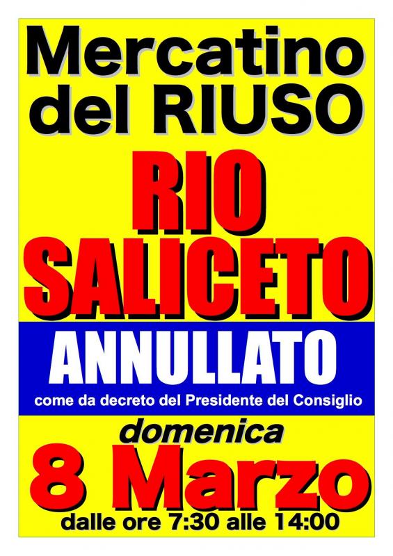 Il Mercatino del Riuso in programma Domenica 8 Marzo 2020 a RIO SALICETO (RE) é stato ANNULLATO, in rispetto al decreto del Presidente del Consiglio dei Ministri