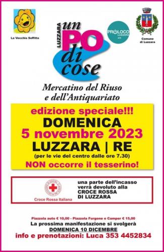 A Luzzara in provincia di Reggio Emilia si svolge nella giornata di Domenica 05 Novembre 2023, dalle ore 07.30 il Mercatino del Riuso e dell'Antiquariato.