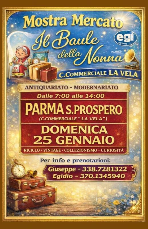 Presso il Centro Commerciale "Le Vele" a Parma si svolge nella giornata di Domenica 25 Gennaio 2026, dalle ore 07.00 alle ore 14.00, il Mercatino del Riuso "Il Baule della Nonna".