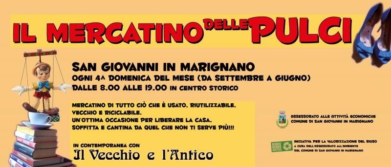 Ogni quarta domenica del mese nel centro storico di San Giovanni in Marignano, in contemporanea con ‘Il Vecchio e l’Antico’, il tipico Mercatino delle Pulci, con cose usate e riutilizzabili anche recenti.